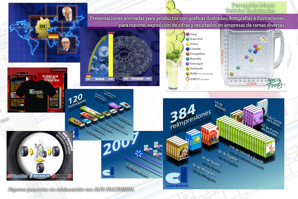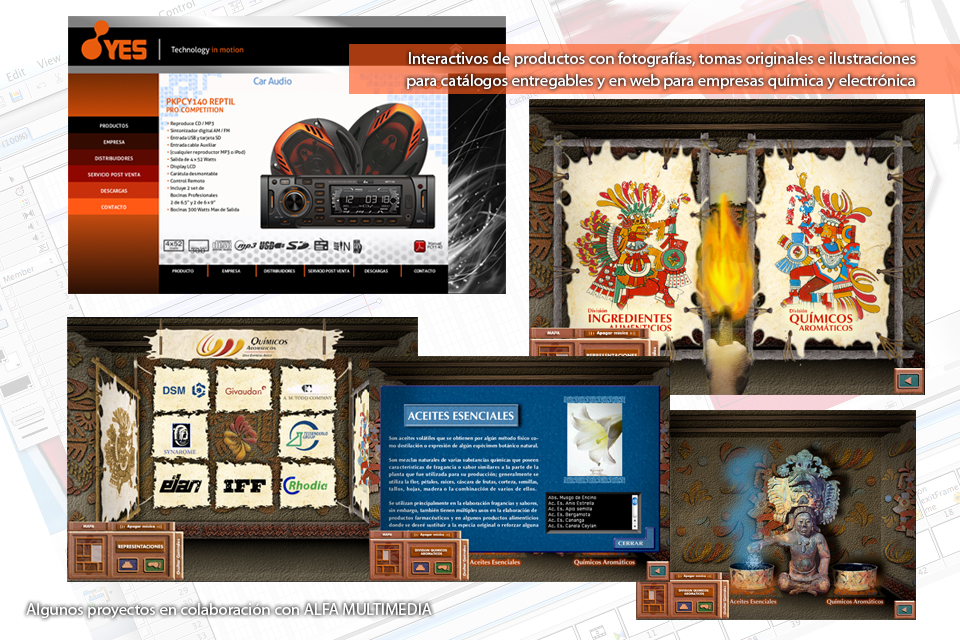 Presentaciones interactivas de producto, discos interactivos, trazo de mapas y esquemas, fotografías e ilustración.